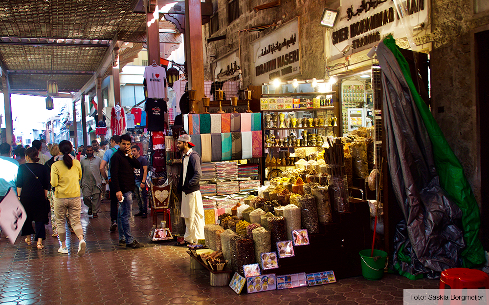 Alle zintuigen staan op scherp terwijl je struinend door Bur Dubai Souk loopt. Waar in de ene shop een kooplied een kameel in zand tekent, roept de andere verkoper je voor zijn gekleurde Arabische kussentjes en laat de buurman zijn verse kruiden aan je ruiken.