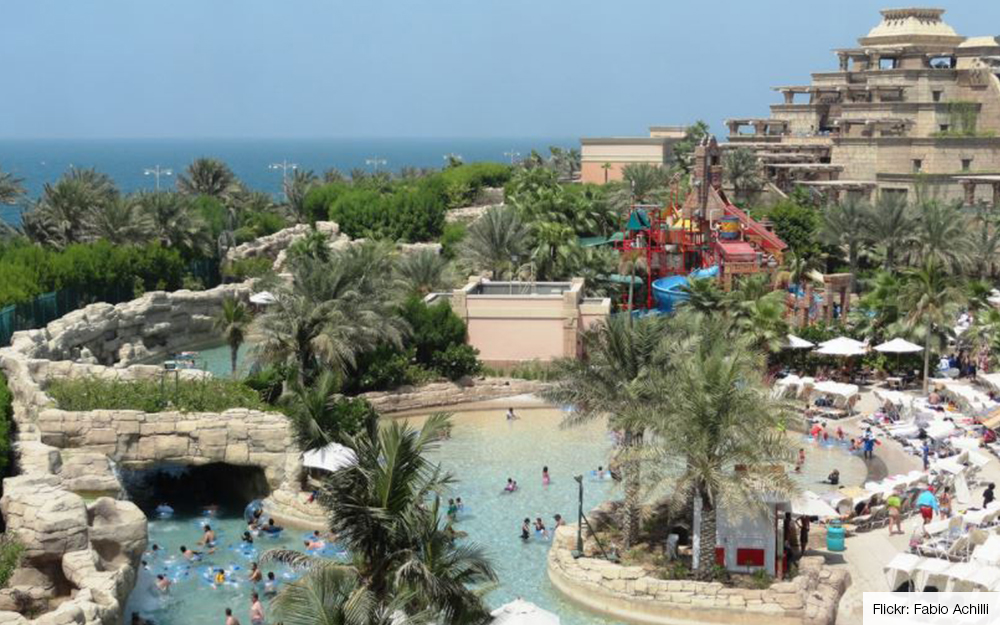 In het Aquaventure Waterpark kronkelen de waterglijbanen over de grote en paradijselijke zwembaden. Dit grootste waterpark van het Midden-Oosten staat garant voor ultiem waterpret en is in het bezit van de grootste glijbaan ter wereld. Een verrassing zal dat waarschijnlijk niet meer zijn.