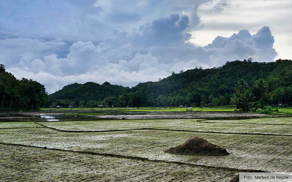 Terwijl je verder tuft op je brommer, droogt de steeds feller wordende zon de met modder besmeerde paden op. Was je net nog op een drukke Filipijnse hoofdweg met toeterende veewagens, nu sta je in totale stilte in de middle of nowhere. Letterlijk. Waterige rijstvelden dansen om je heen, enkel vergezeld door een eenzaam hutje in de verte.