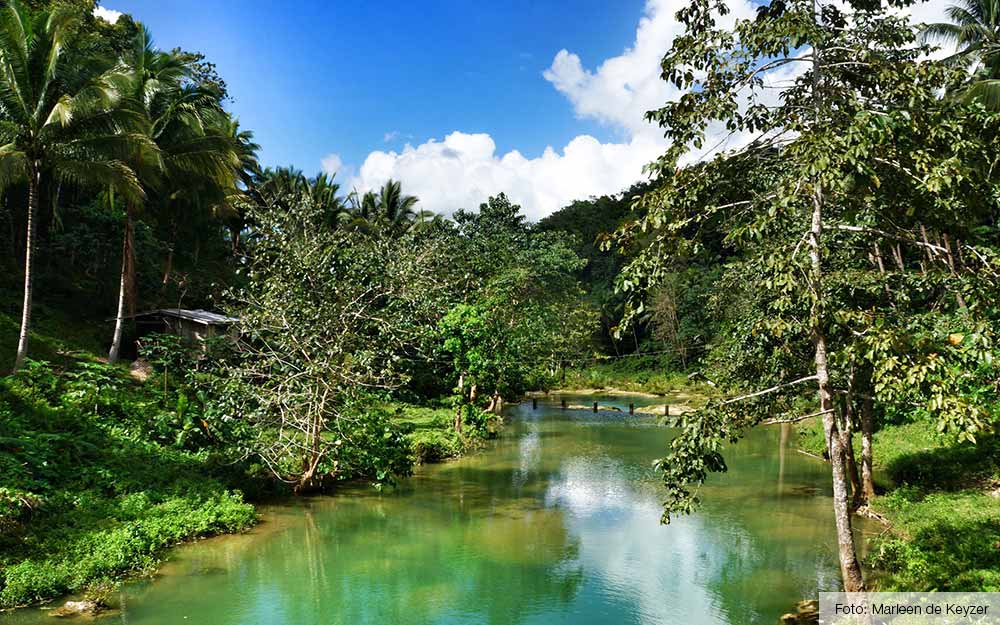 Terwijl je door de rijstvelden van Bilar rijdt, kijk je uit op een eindeloos lijkende groene vlakte. Boerderijen schieten voorbij en kinderen zwaaien enthousiast naar je. Maar plots wordt het zandpad hobbeliger en vereenzaamt de omgeving. Zie je daar nou een houten hangbrug? Ja, er kabbelt een blauwgroene rivier voort verstopt tussen een wildernis van palmen. En opeens zijn ze er, de watervallen. Alsof iemand ze daar heeft neergezet en het aan niemand heeft verteld.