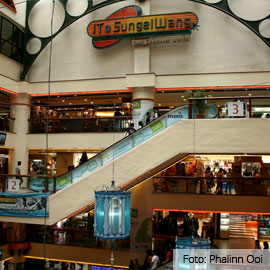 Er hangt een hectische sfeer, overal draait muziek en de etalages schreeuwen om aandacht. Je bevindt je op de begane grond van het Sungei Wang Plaza, een winkelcentrum dat geprezen is door locals omdat je er goedkoop kunt shoppen. In dit centrum wacht je zeven verdiepingen vol met kledingwinkels, supermarkten, elektronica winkels, departementstores en een foodcourt.