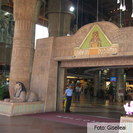 Meer dan alleen winkelcentrum is het entertainende Sunway Pyramid. Gebouwd in de vorm van een piramide en voorzien van een levensgrote leeuw bij de ingang, lijk je even Egypte binnen te wandelen. In het nieuwere gedeelte zijn deze kenmerken echter verdwenen en besef je je weer dat er achthonderd winkels op je wachten.