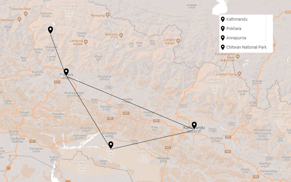 Nepal is een magisch land. En niet alleen dankzij zijn Himalaya. De doorgaans hindoestaanse geloofsovertuiging biedt je ook hele nieuwe culturele inzichten. Zowel de natuurlijke als culturele highlights bezoek je tijdens deze rondreis door Nepal. Je start en eindigt in hoofdstad Kathmandu, maakt een vijfdaagse trektocht in de bergen en gaat op zoek naar neushoorns. Binnen twee weken reis je vijfhonderd kilometer af, en heb je tijdens je rondreis door Nepal de mooiste highlights gezien!