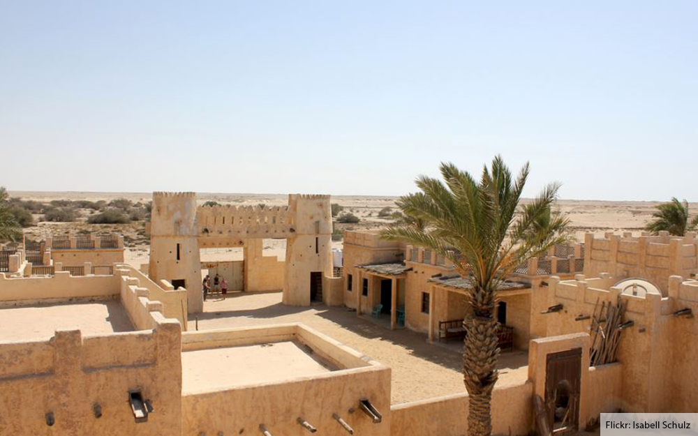 Je rijdt hobbelend verder over de harde stenen en beseft dat de omgeving van Bir Zekreet haast alleen in films voorkomt. Bij het kunstmatige dorp Film City, net buiten de kust, is dat daadwerkelijk het geval. De nederzetting is speciaal gebouwd voor opnames van een Arabische serie en laat zien hoe Bir Zekreet er eeuwen geleden uitzag.