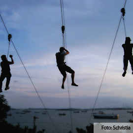 Voor meer adrenaline ga je naar het Mega Adventure Park. Hier vind je de MegaZip, de langste en steilste zipline van Azië. Vanaf de Imbiah Hill, op 75 meter hoogte, zweef je met zestig kilometer per uur zo'n 450 meter door de jungle.