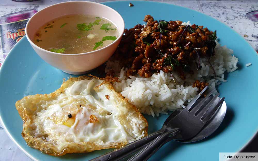 Houd jij van een beetje basilicum in je eten? Dan is pad krapow misschien wel jouw lievelingsgerecht. Traditioneel bestaat dit Thaise streetfoodhapje uit vlees met heilige basilicum, rijst en een gebakken ei. Maar onderhand kom je het gerecht op elke manier tegen in de straten van Bangkok. Zo zit er soms ook vis in of juist geen ei. Voor iedereen is er dus wel een lekkere Pad Krapow.